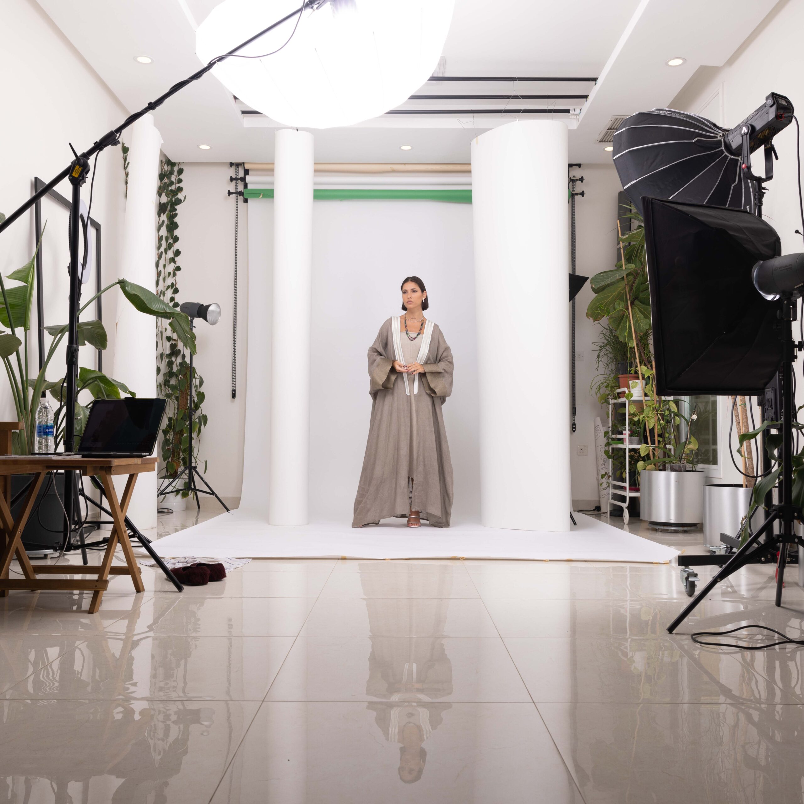 Our female photographer in Kuwait has a fully equipped home studio in Bayan, features continuous lights, strobes, and a Canon R5 and a Canon R5mKII.
